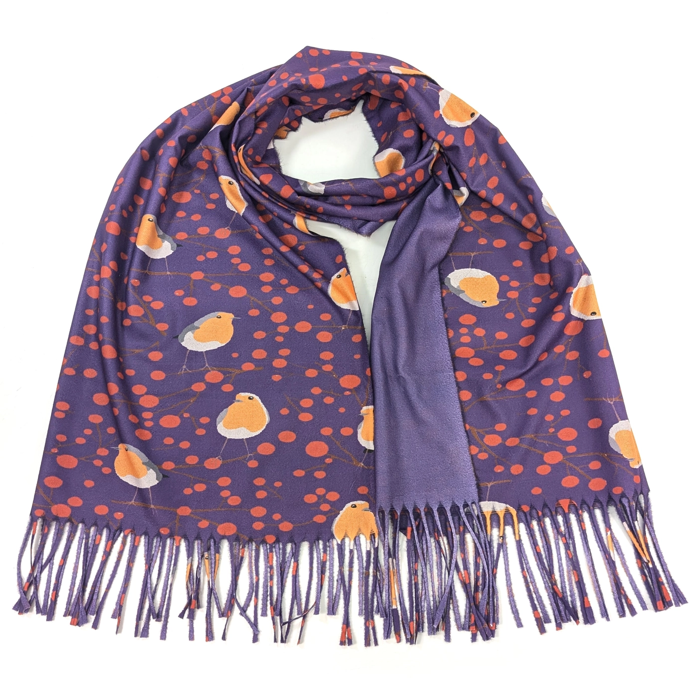 Feather Robins Red Berry Robin Pashmina – Purple (70x180cm)